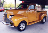 Auto. Es handelt sich um einen zimtbraunen Studebaker der M-Serie. Ein